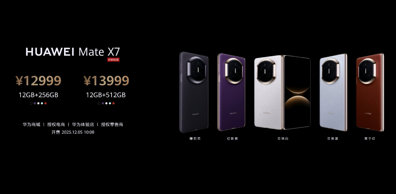 【华为Mate X7】12+256GB版12999元,12+512GB版13999元;【典藏版】16+512GB版14999元,16GB+1TB版15999元;